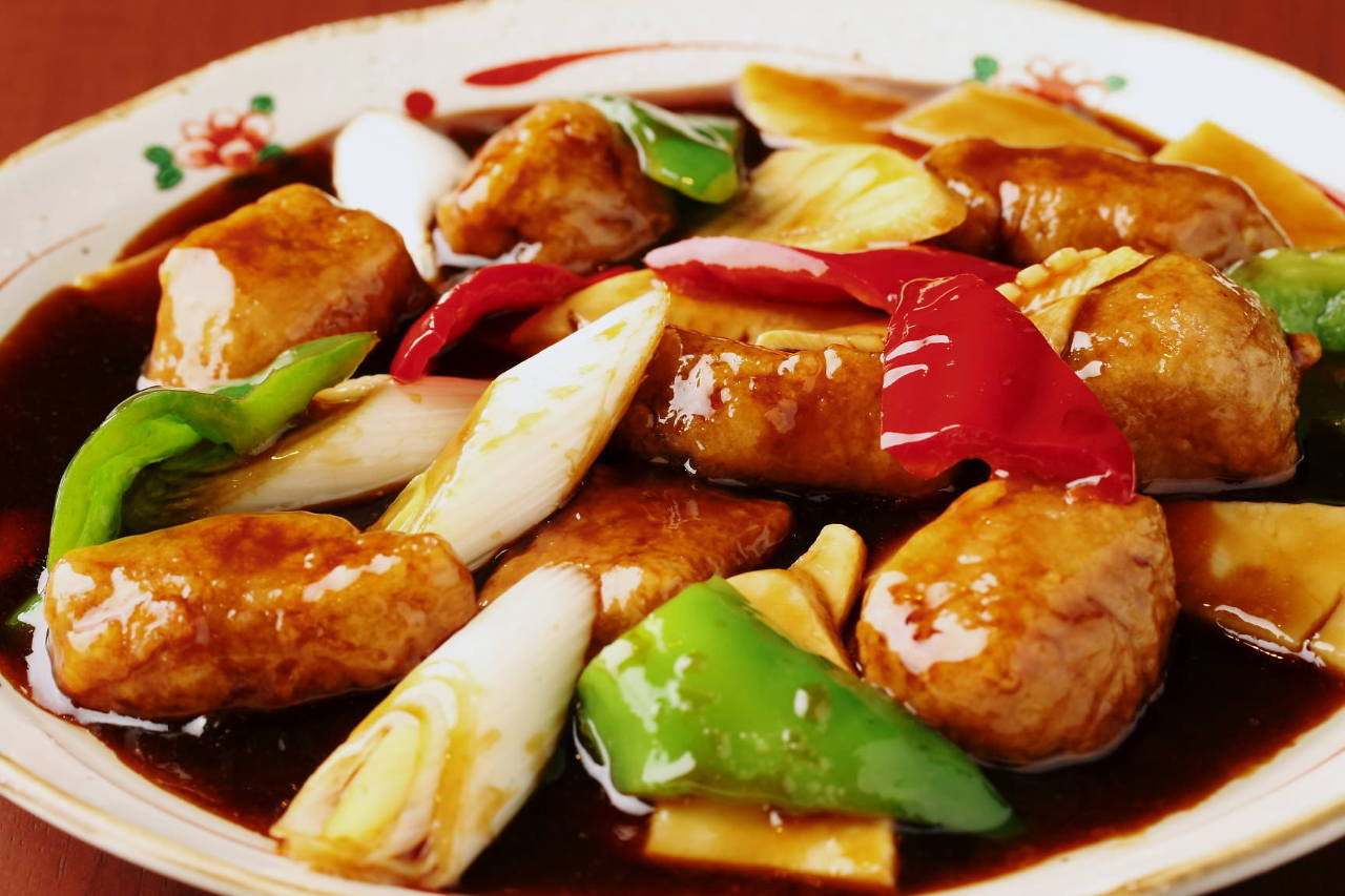 Diced tofu stir-fried with ground meat and doubanjang (chili bean sauce), etc., lightly cooked in thinned potato starch and seasonings.
