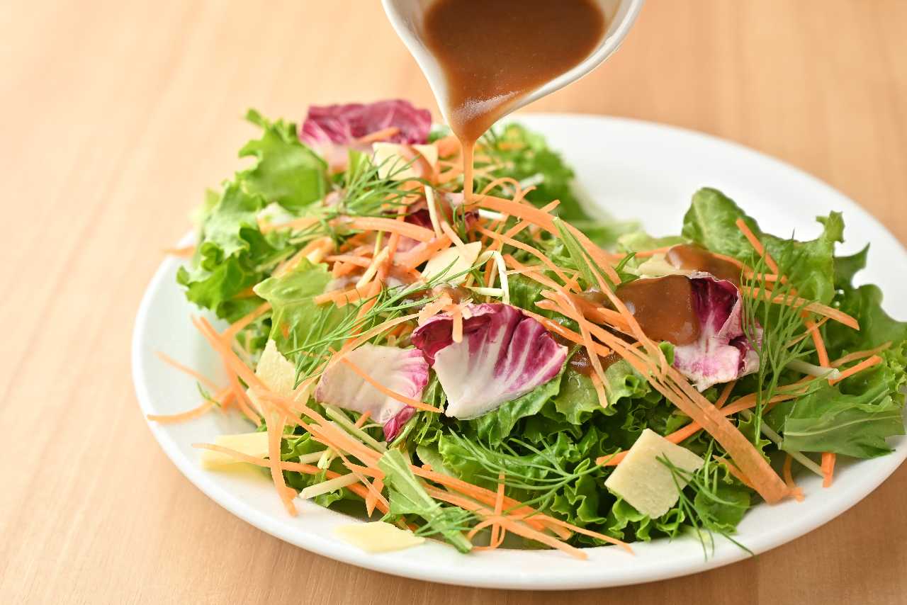 Dish where vegetables and other ingredients are eaten with dressing.
