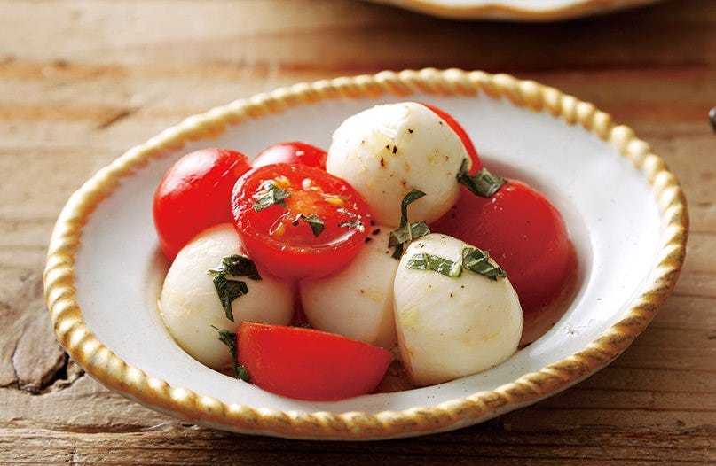 プチトマトとミニモッツァレラチーズの拘りオリーブオイル掛け