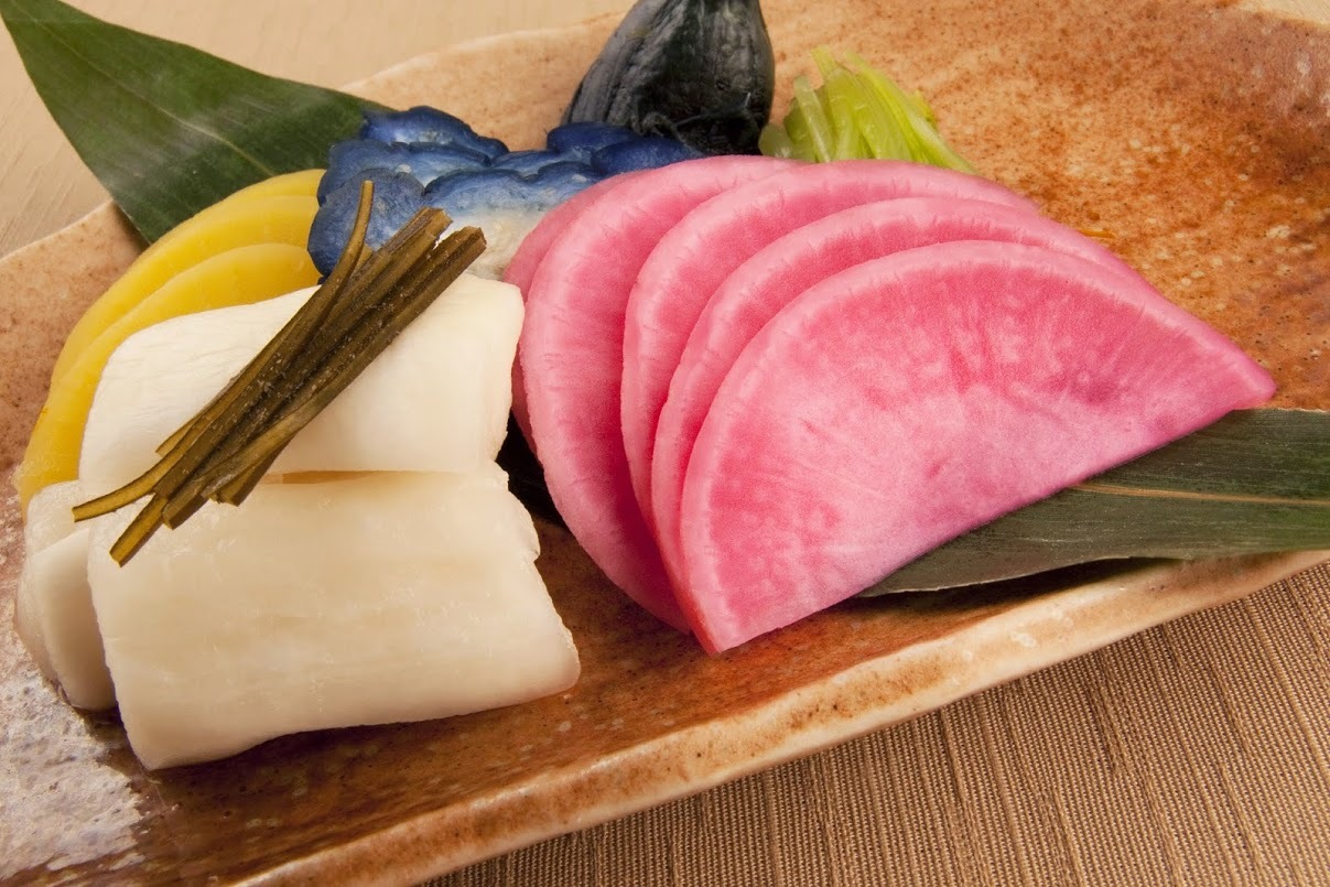 A type of food in which ingredients are marinated in seasonings (salt, rice bran, vinegar, miso, soy sauce etc.).