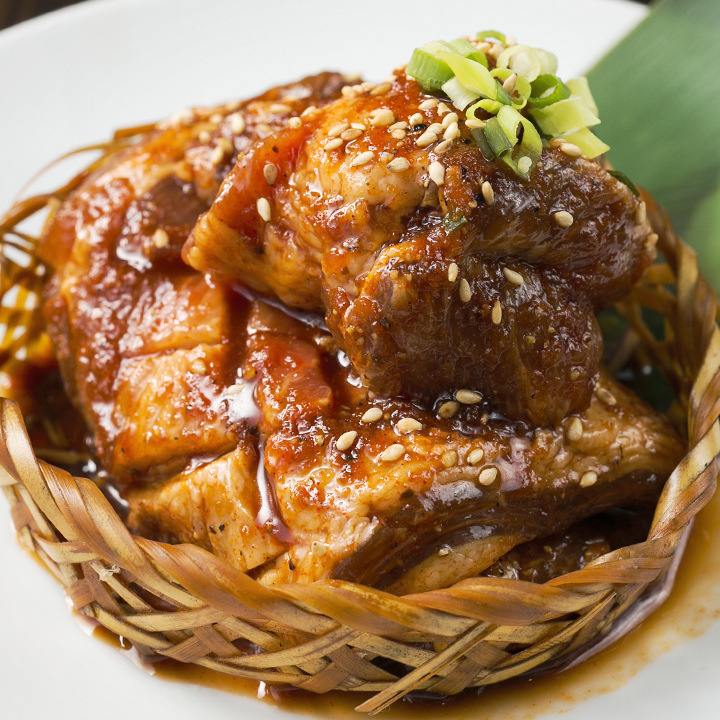 Pork dish made using meat cut from the ribs called "Kalbi."
