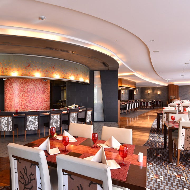 Complete with counter seats where you can enjoy cooking before your very eyes and table seats where you can relaxingly enjoy dining.