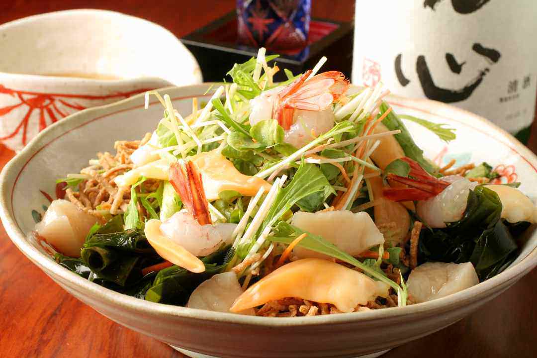 Squid, Octopus, Scallop, Burdock, Carrot, Snow peas, Hen's egg