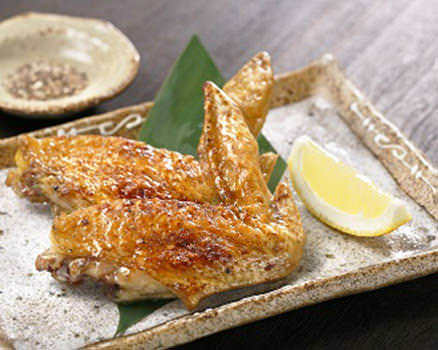 Free-range chicken meat quickly char-grilled and seasoned with soy sauce and condiments, etc.