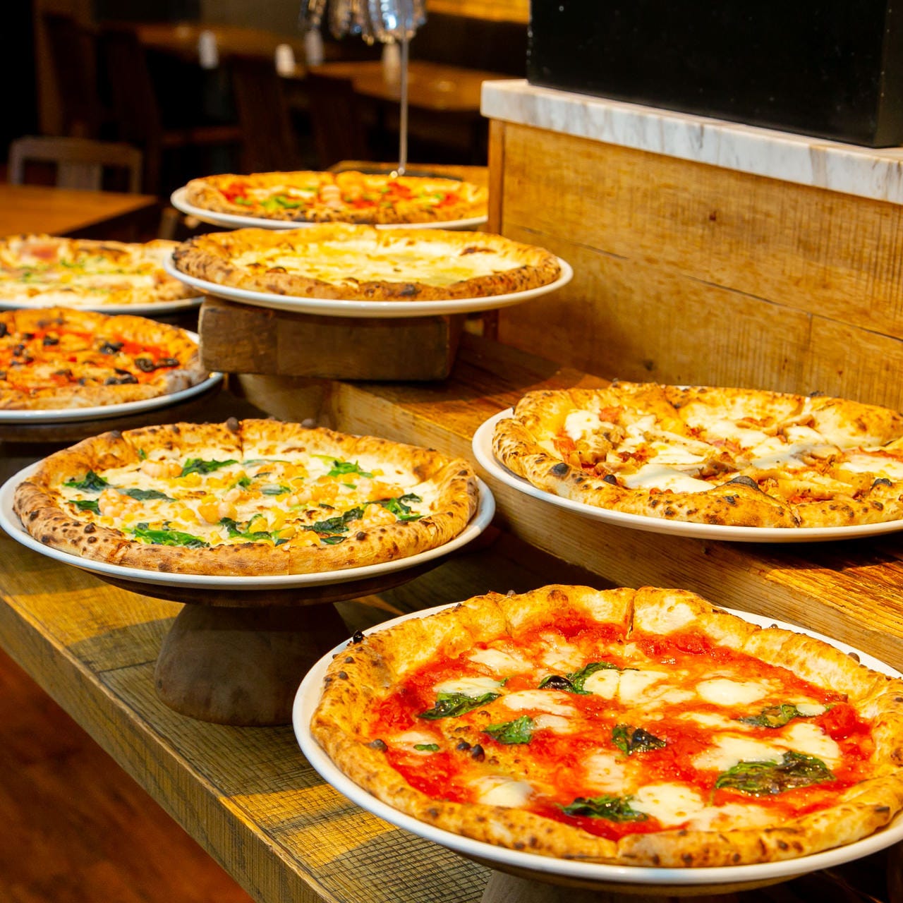 Authentic Neapolitan wooden kiln pizzas prepared by seasoned chefs.