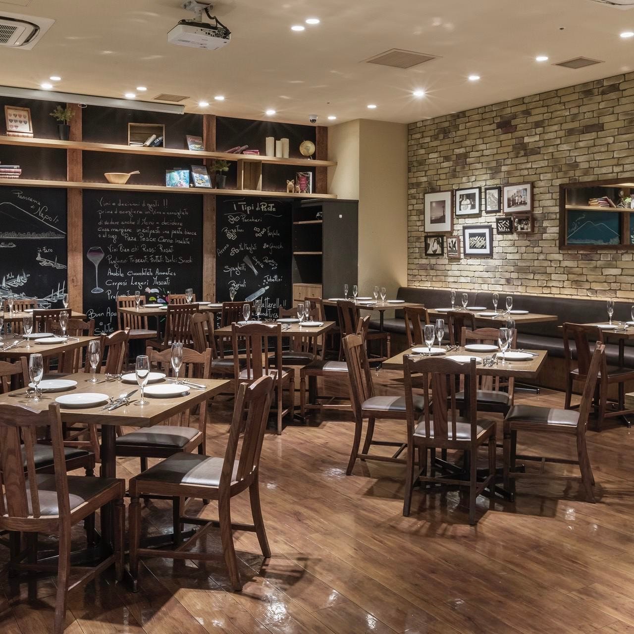 The second-floor dining room has a more elegant and grown-up ambiance where customers can enjoy a refined atmosphere and excellent wine.
