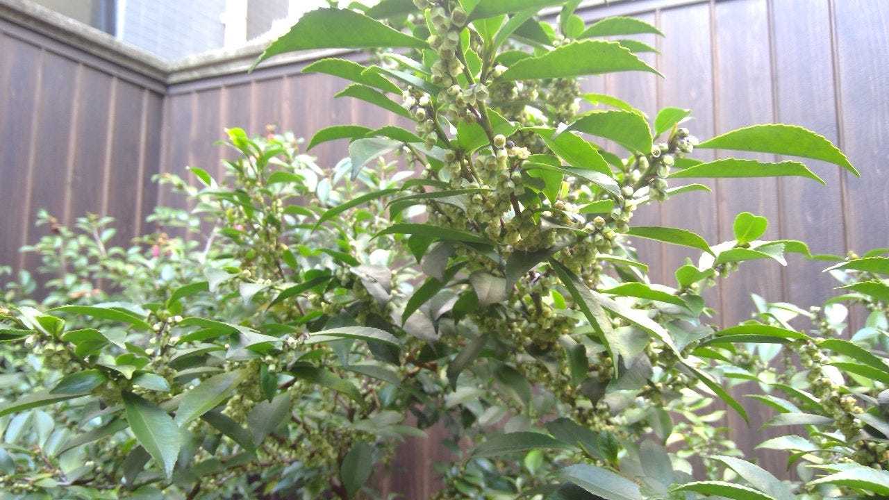 The flowers of the Japanese holly (Osmanthus heterophyllus) bloom during the cold months of November and December.