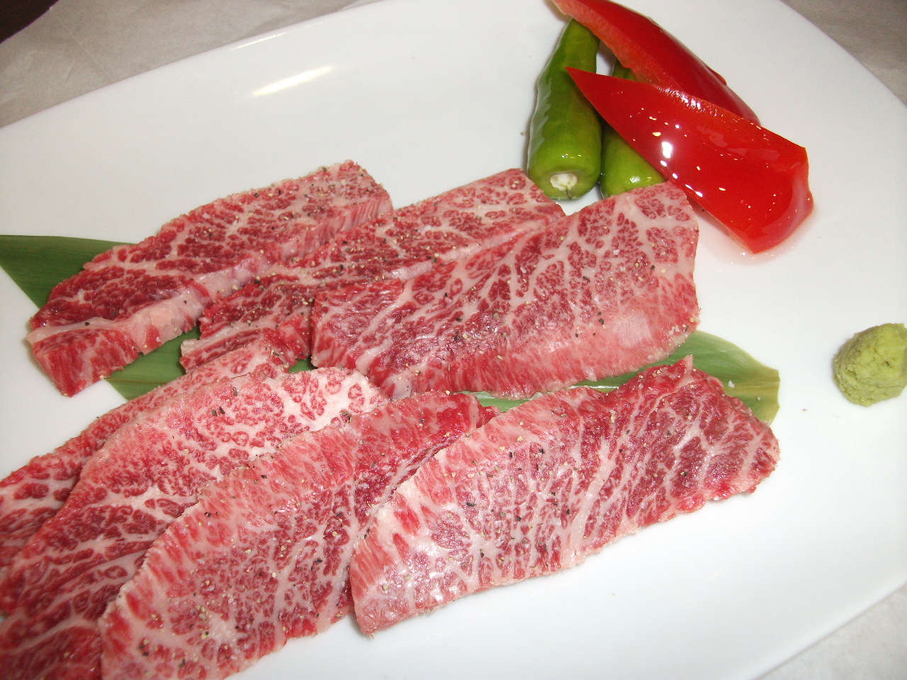 Select kalbi (Wagyu beef rib area).