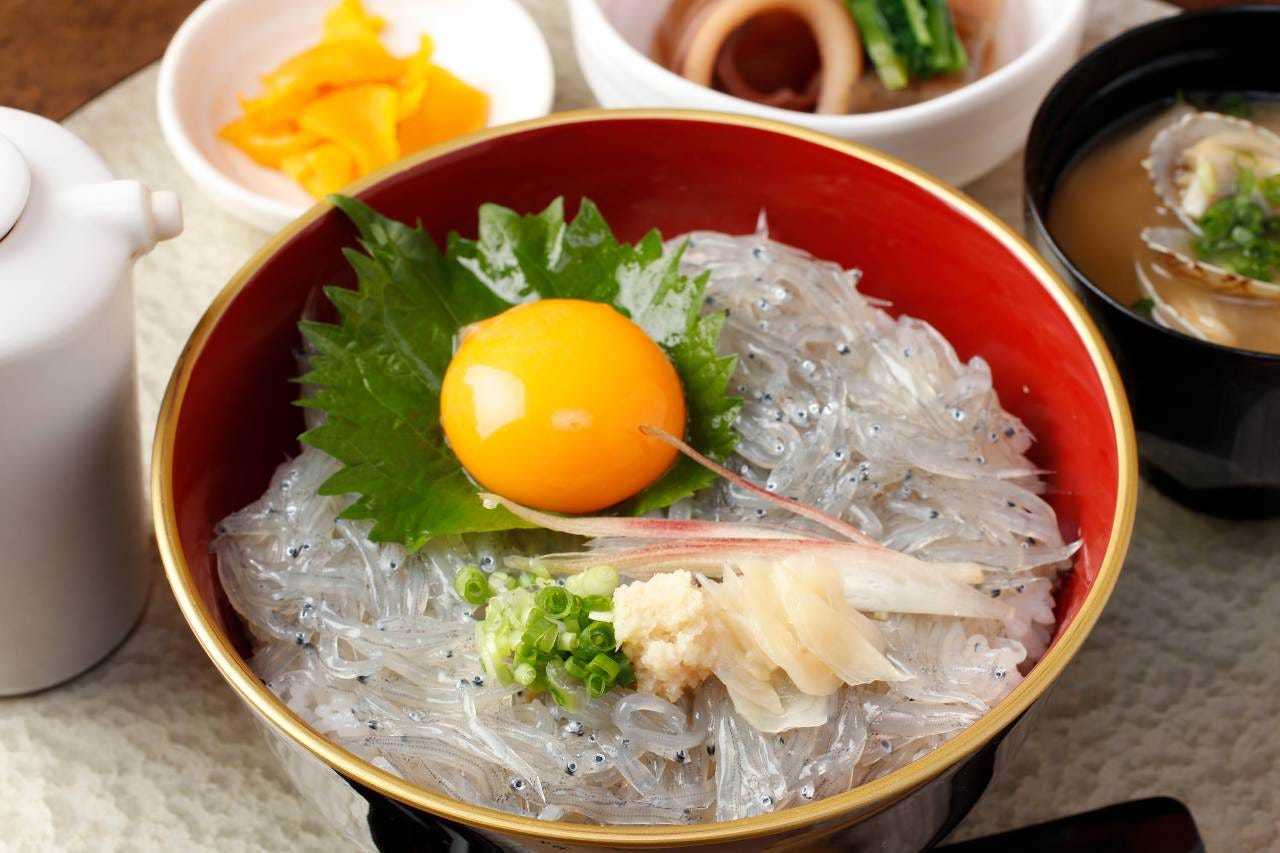 Raw or boiled shirasu (whitebait) served over rice.