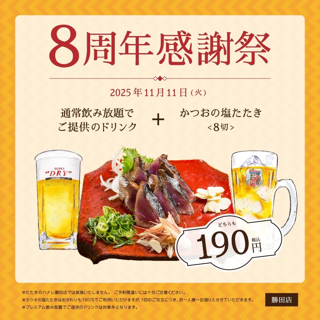 ●If only reserving seats A cancellation fee may be charged. For details, please check with the shop with which you made your reservation. |