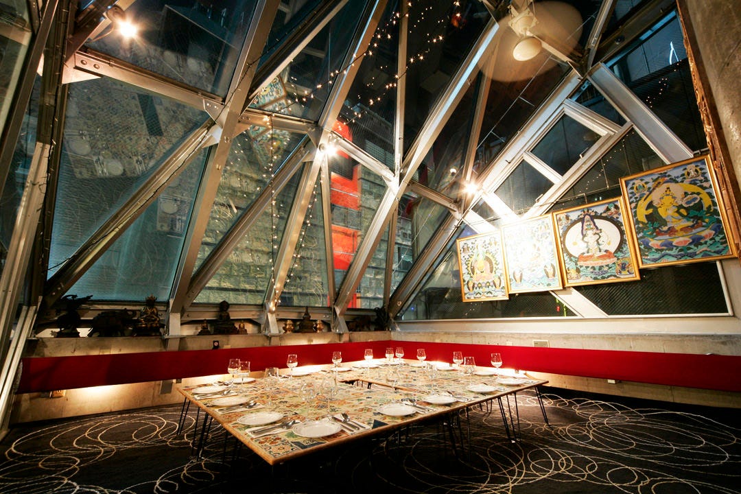 The dining areas provide Himalayan taste with nostalgic atmosphere decorated in six different themes and private rooms from casually decorated floors to glass-walled party room to select from.
