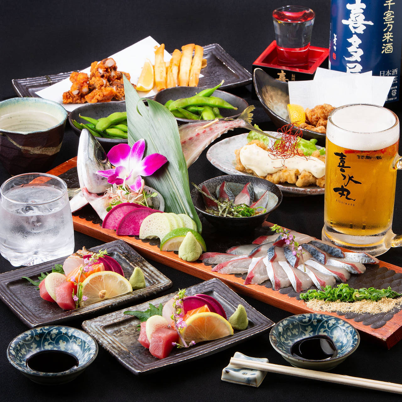 Beer / Highball / Shochu Highball, Sour / Japanese Sake / Shochu (Distilled spirits) / Plum Wine / Fruit Liqueur / Cocktails / Non-Alcoholic Beverages / Soft Drinks