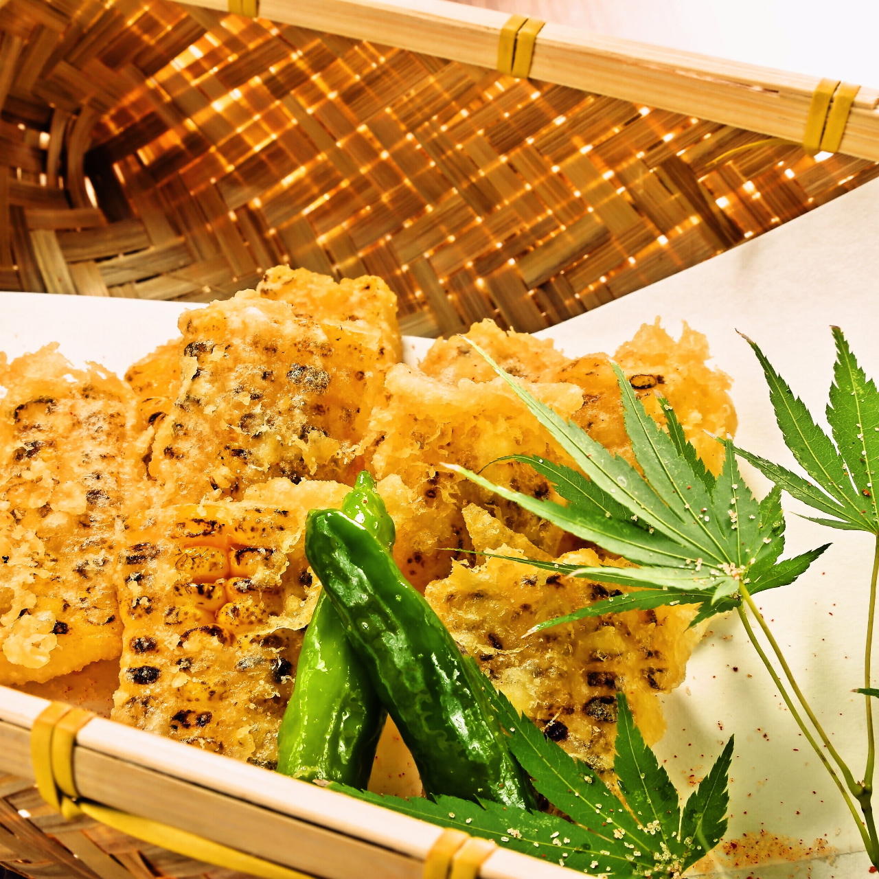 Boiled corn covered with sauce and grilled.