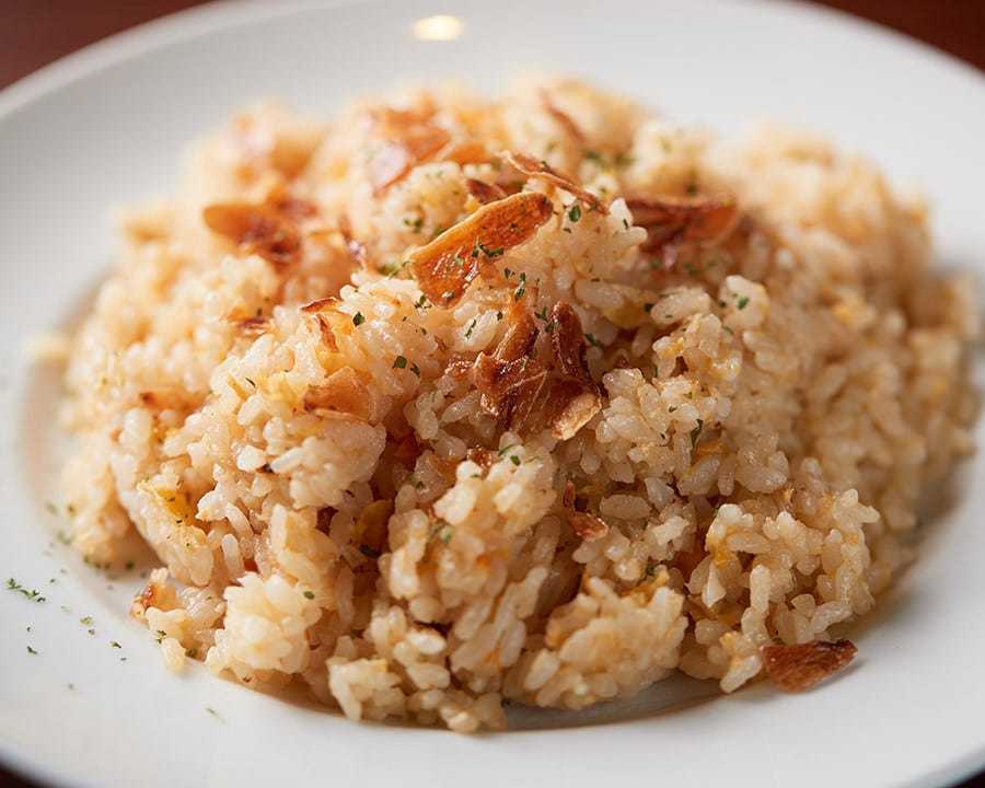 Rice fried with sliced garlic and other ingredients like parsley.