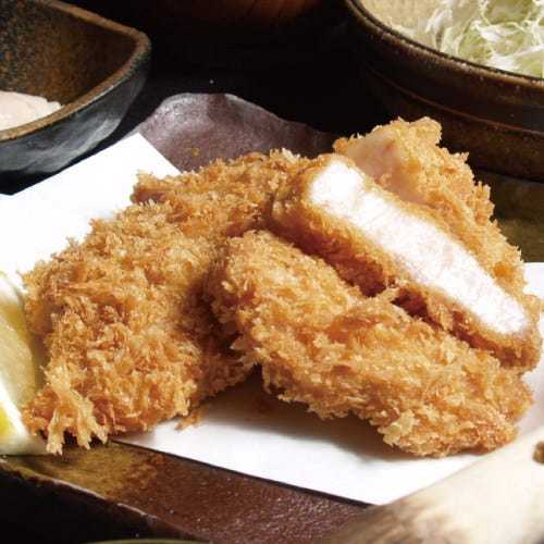 Sliced pork sirloin meat, coated in batter and deep-fried.