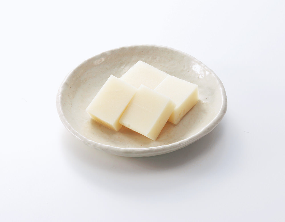 A dish of steamed sticky rice pounded in a mortar and formed into circular or square shapes.
