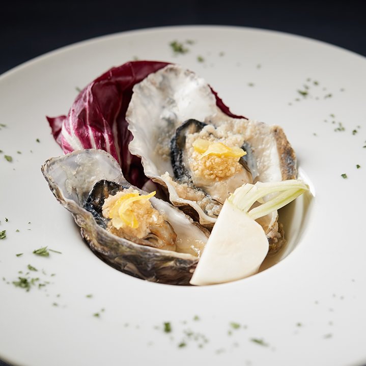 Oysters flavored with condiments and steamed with wine.