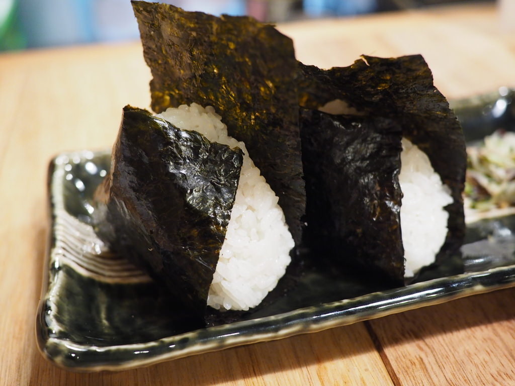 Rice, Nori, Marinated cod roe, Pickled plum, Salmon