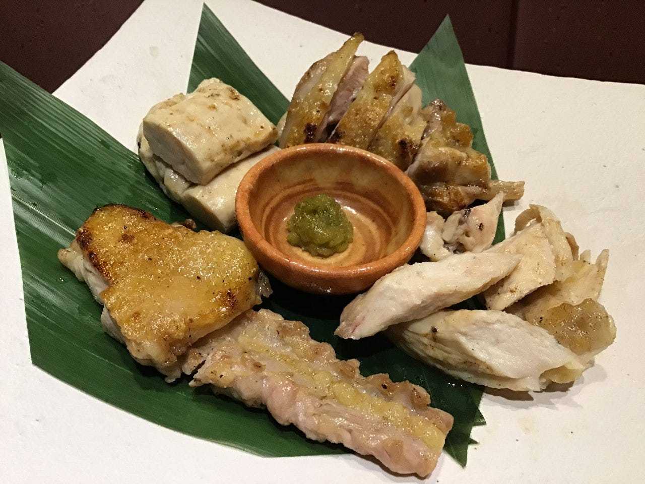 Boiled chicken skin dressed with Japanese citrus and soy sauce.