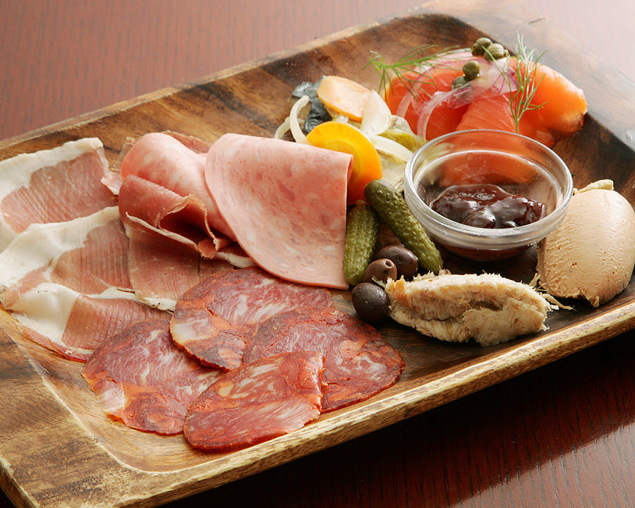 Assortiment de charcuterie シャルキュテュリー(生ハム・リエット等、前菜6~7種類の盛合わせ)