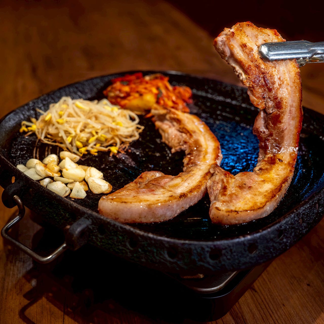 Our most popular dish is “Copchang chongol”, stone grill hotpot with fresh Japanese beef offals !