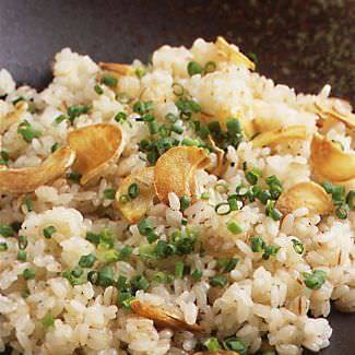 Rice fried with sliced garlic and other ingredients like parsley.