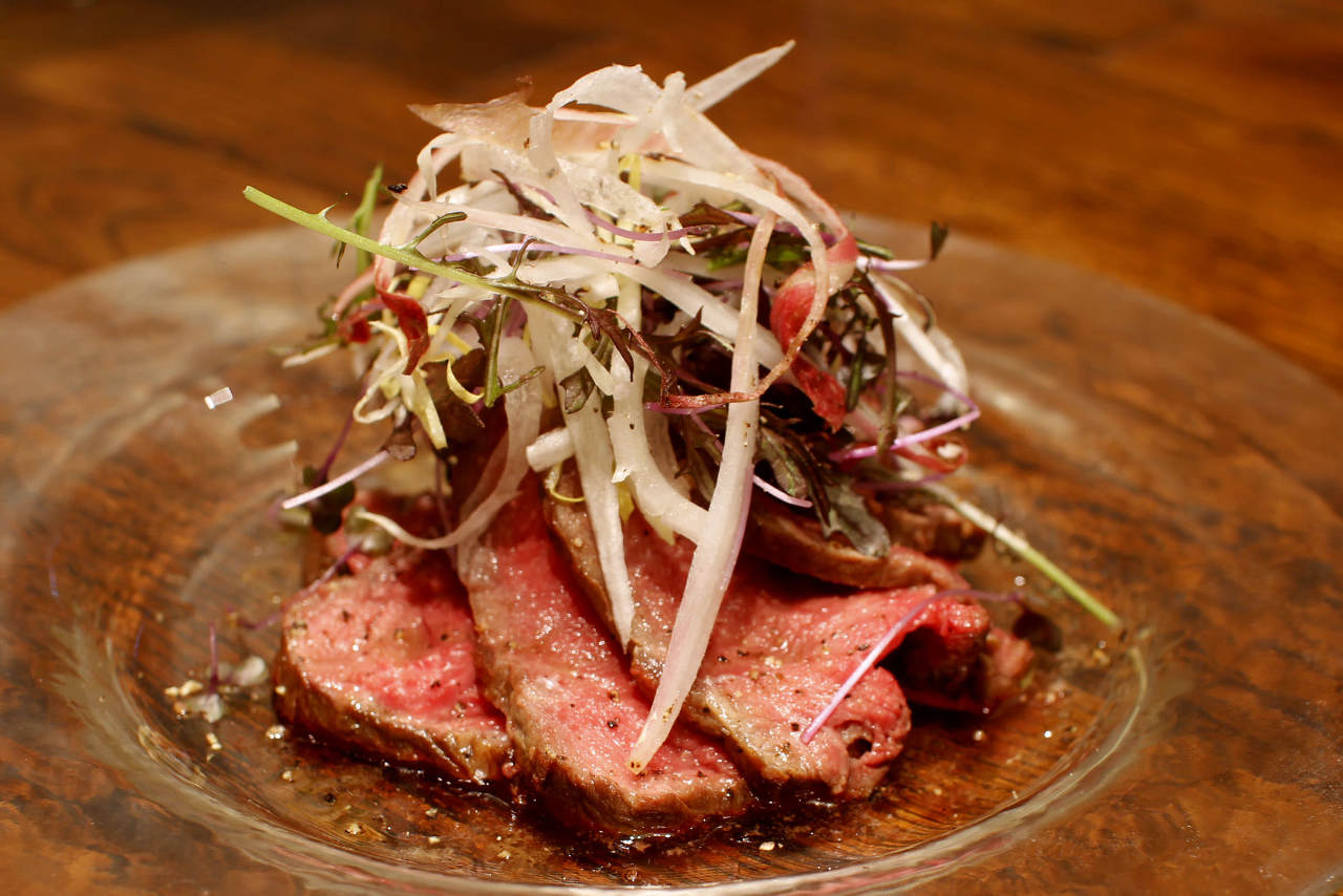 Beef quickly char-grilled and seasoned with soy sauce and condiments, etc.