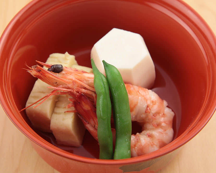 Rice topped with fresh sliced sea bream and seasonings, with broth or Japanese tea poured over.