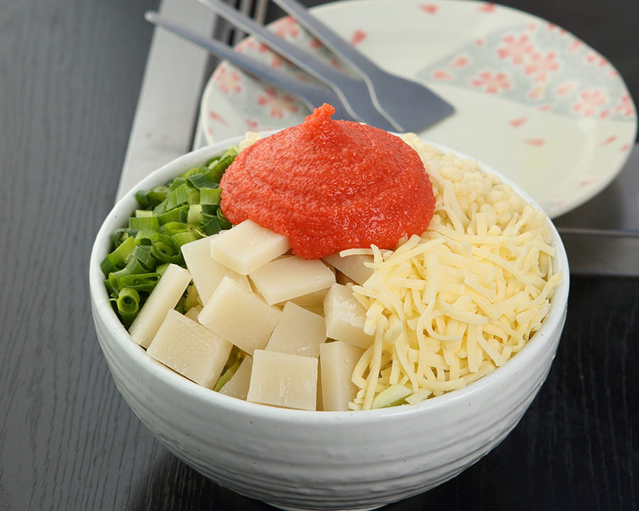 - Ingredients: Marinated cod roe, Wheat flour, Mochi (rice cake), Cheese