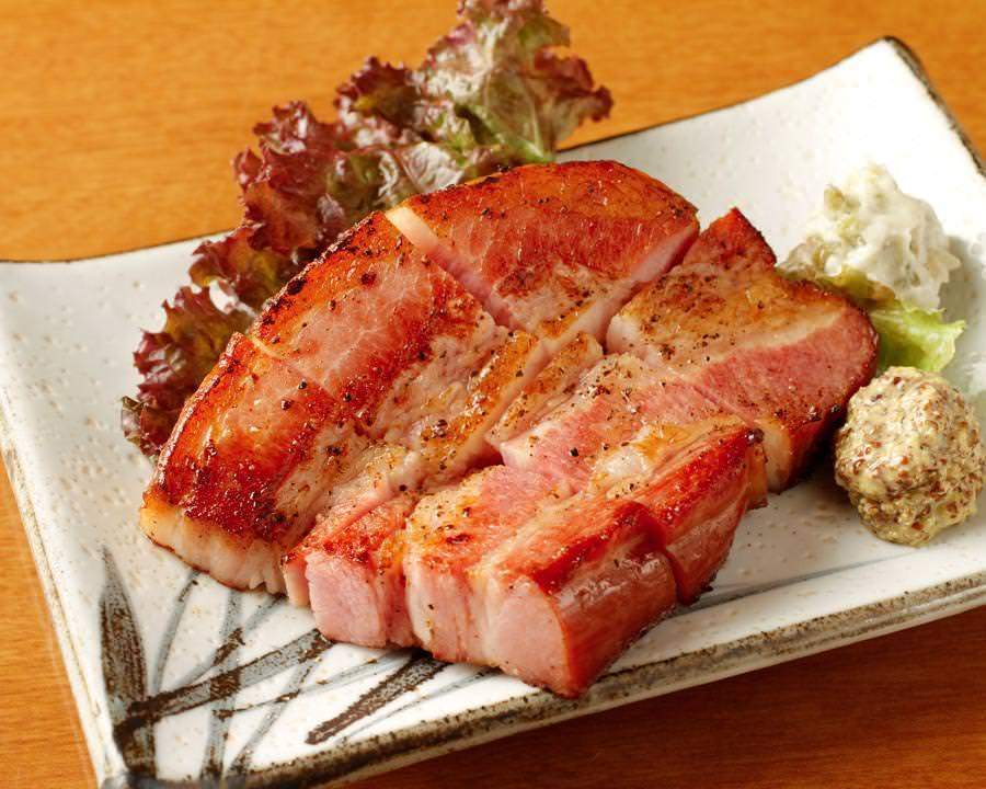 Thickly cut and grilled bacon.