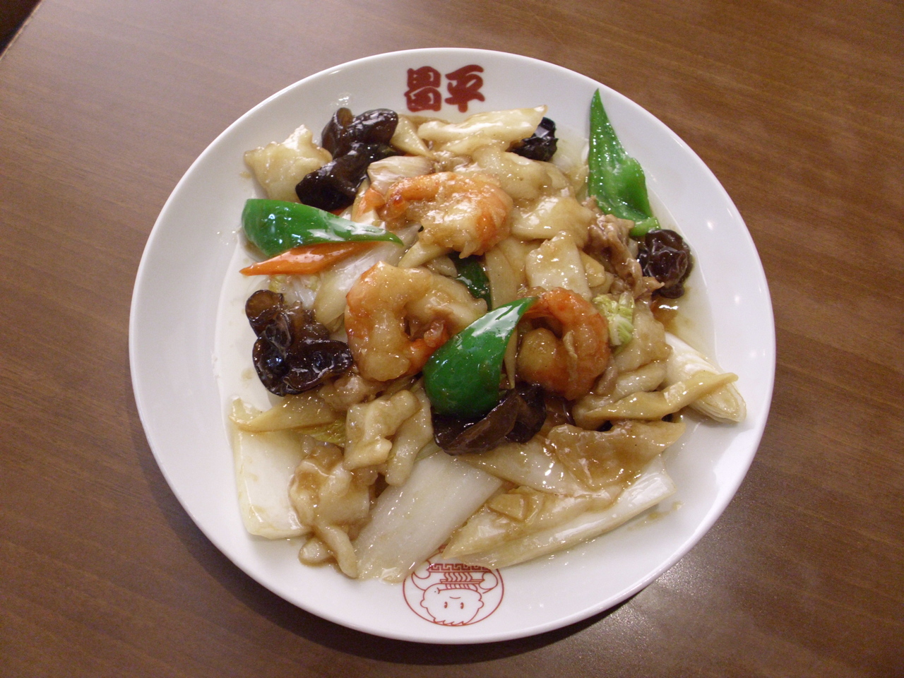 Shrimp, Squid, Chinese cabbage, Carrot, Bamboo shoot, Green pepper, Wood ear mushroom
