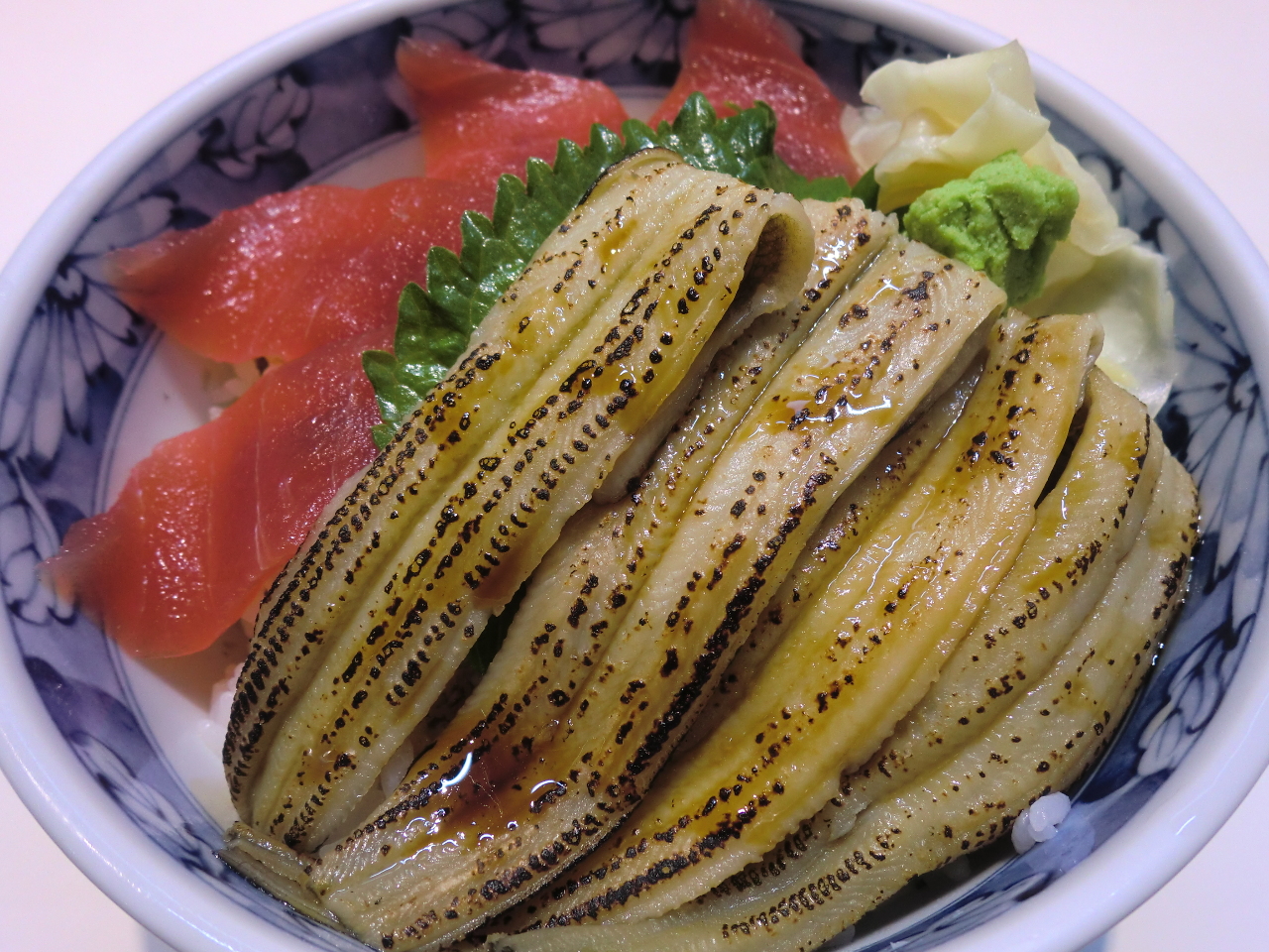 Glaze-grilled young conger eel rice bowl with lean tuna