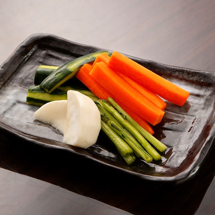Vegetables pickled in salt, rice bran, miso, mold, etc.