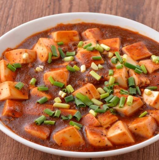 Diced tofu stir-fried with ground meat and doubanjang (chili bean sauce), etc., lightly cooked in thinned potato starch and seasonings.