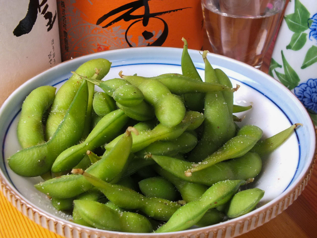Soybeans which are harvested when they are not yet ripe, and boiled in salt water.