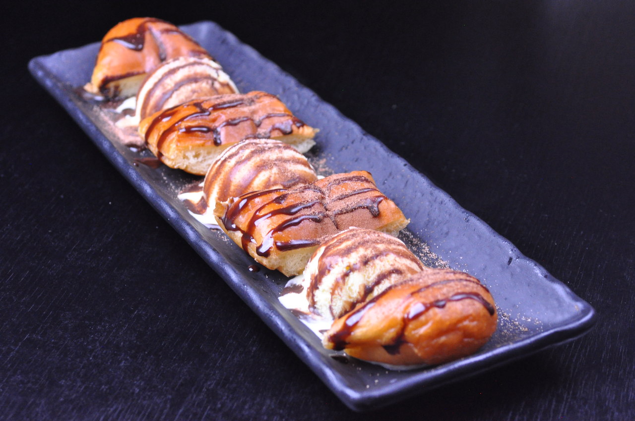 Sliced sweet potato which is deep-fried without breadcrumbs or batter, and seasoned with a sticky butter grilling sauce.
