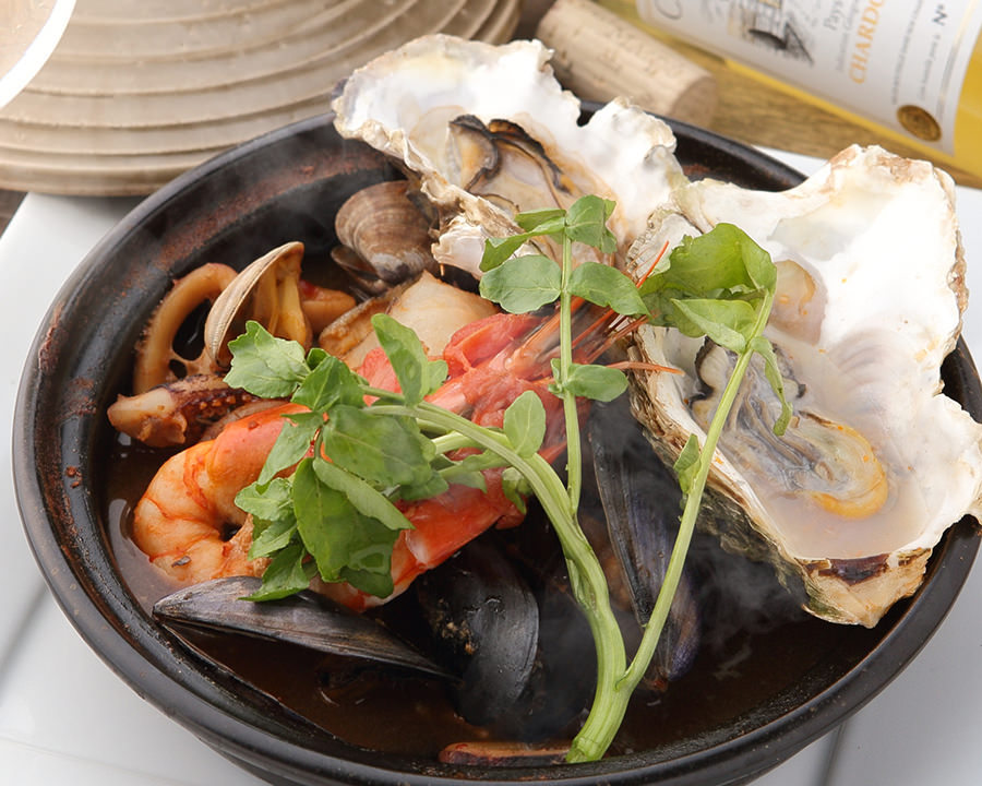 - Ingredients: Golden threadfin bream, Spiny red gurnard, Manila clam, Tomato, Celery, Onion, Sea bream, Shrimp