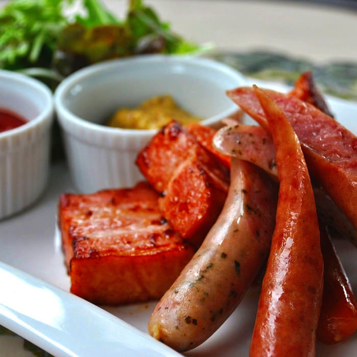 厚切りベーコンとソーセージの盛り合わせ