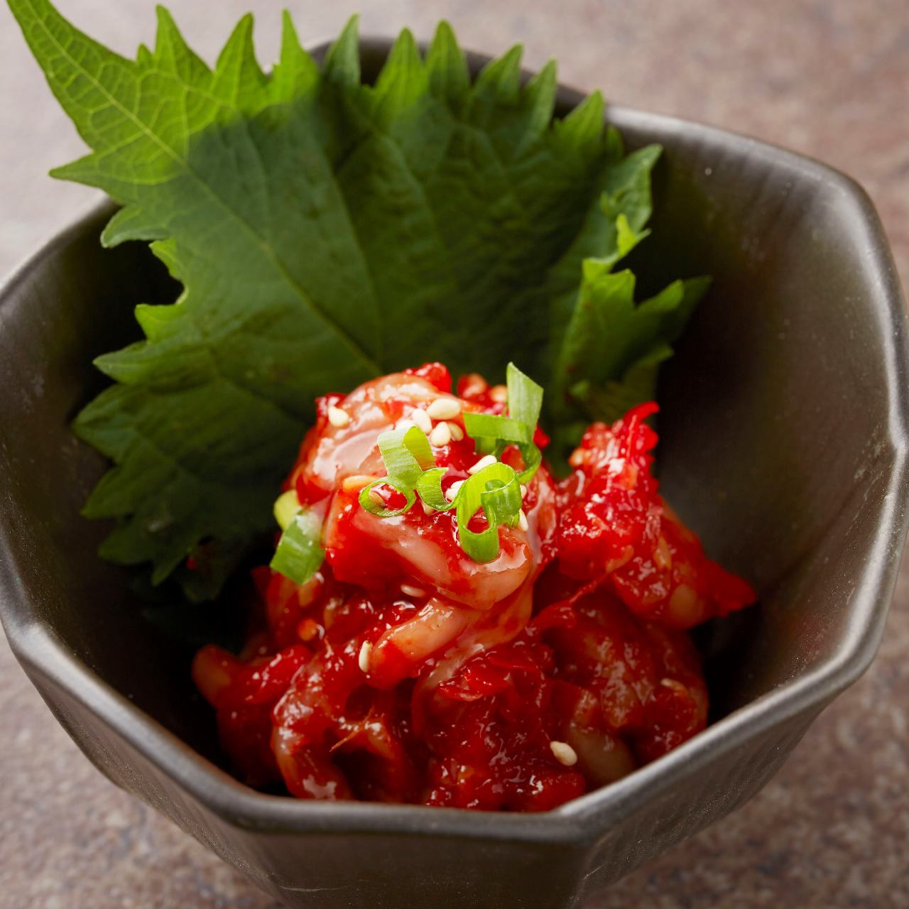 Salted cod innards seasoned with sesame oil and chilli pepper, etc.