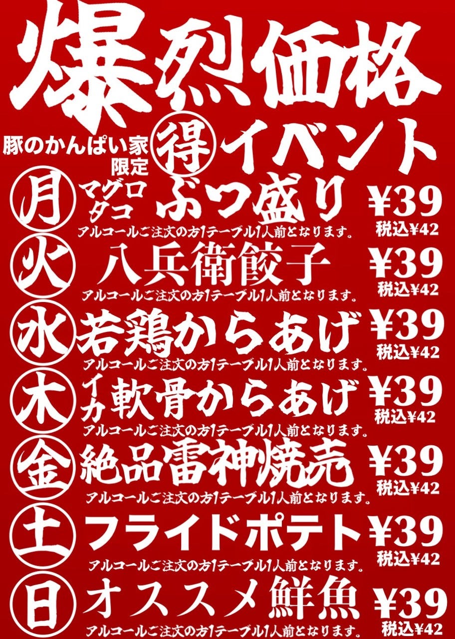 | Menu | All you can drink menu |