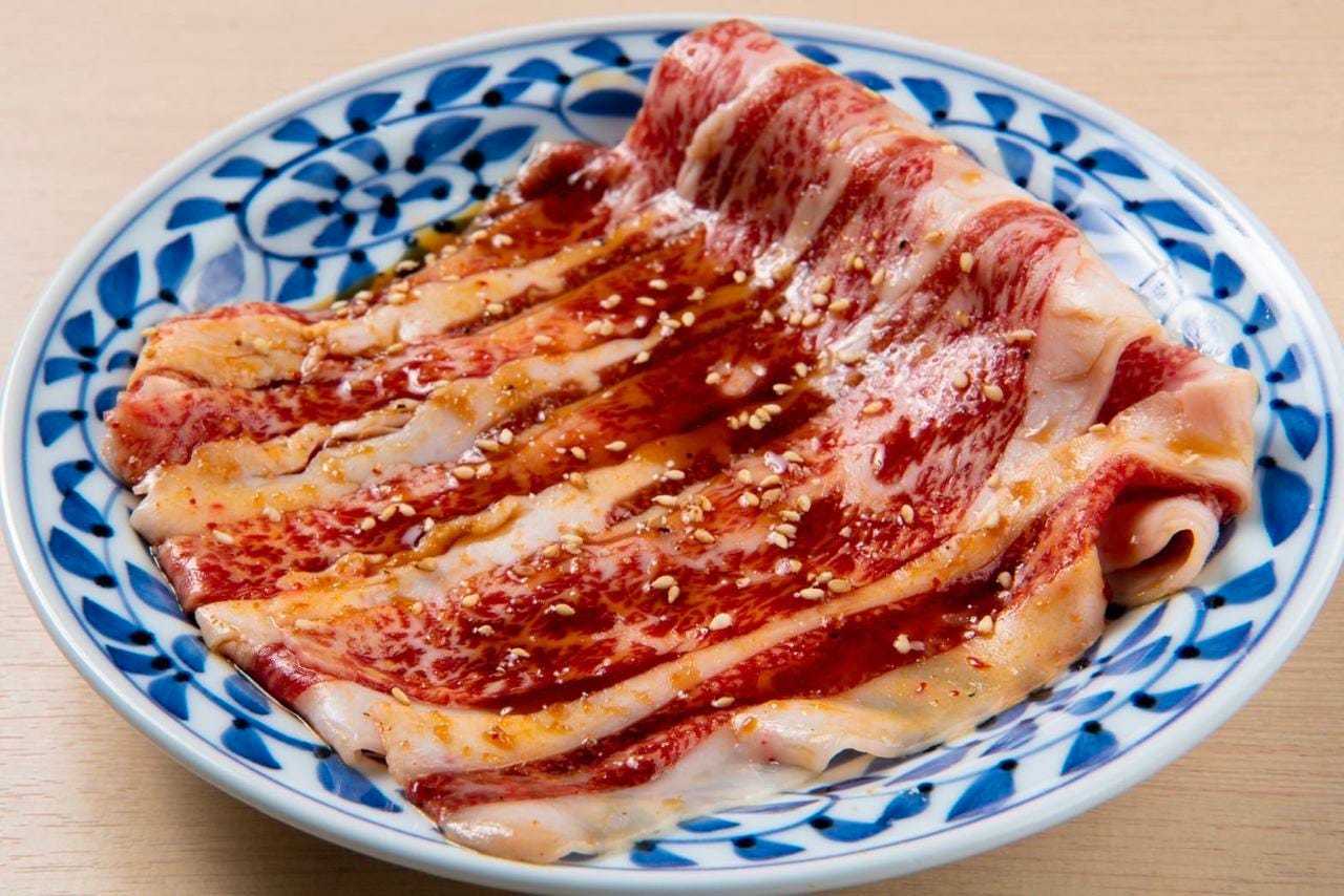 Select kalbi (Wagyu beef rib area).