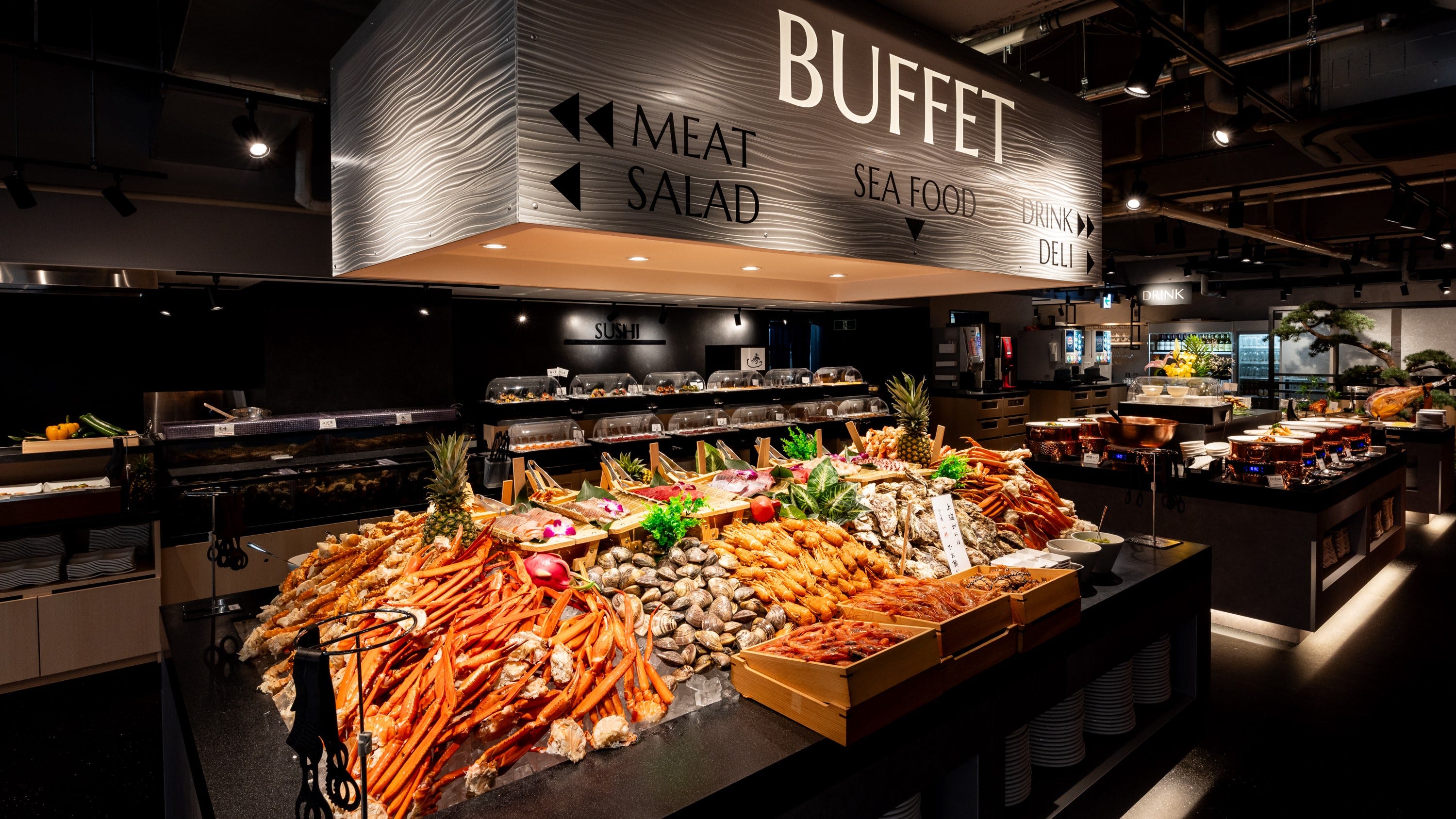 Japan's largest yakiniku and Japanese, Western, and Chinese buffet, which is a hot topic in Ginza, has landed in Shinjuku for the first time! Enjoy an elegant moment at a buffet where the ingredients, space, and taste are all first-class. [Large-scale buffet that you can't experience anywhere else] Enjoy over 150 dishes to your heart's content, including yakiniku, sushi, crab, seafood, Chinese food, and desserts, regardless of genre. Enjoy a variety of dishes prepared by Japanese, Western, and Chinese chefs. We also offer a diverse lineup of delicious sake that will brighten up your wonderful time. [Same-day online reservations accepted; Spacious space with 342 seats in total] Creates a chic and sophisticated space with a luxurious feel. Accommodates from 2 to a maximum of 342 people.