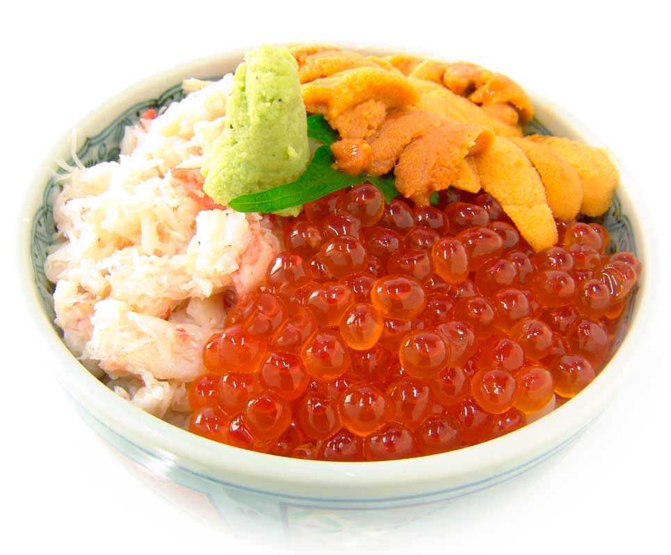 Rice, Sea urchin, Salmon roe, Crab