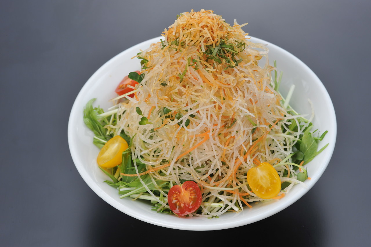 A salad of raw daikon with dressing.