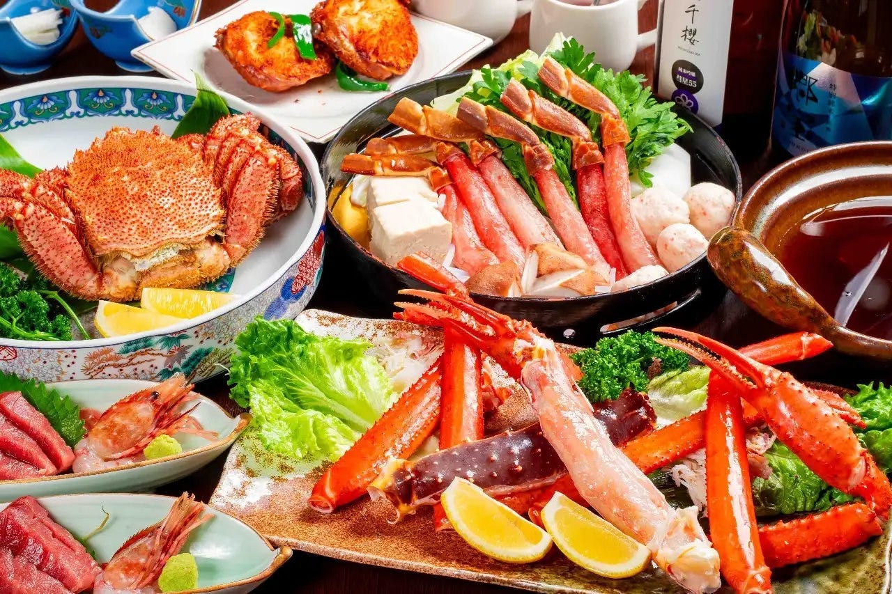 Enjoy the three major crabs (king crab, snow crab, and hairy crab)! We offer shabushabu of blowfish, abalone, sea urchin and crab! Set meals available. Private rooms available.