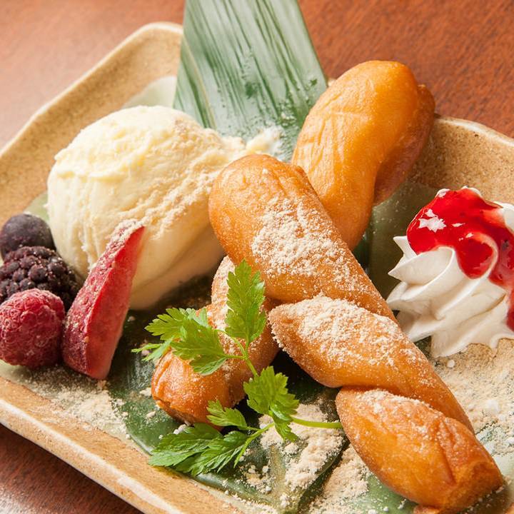 Fried soy milk bread with ice cream