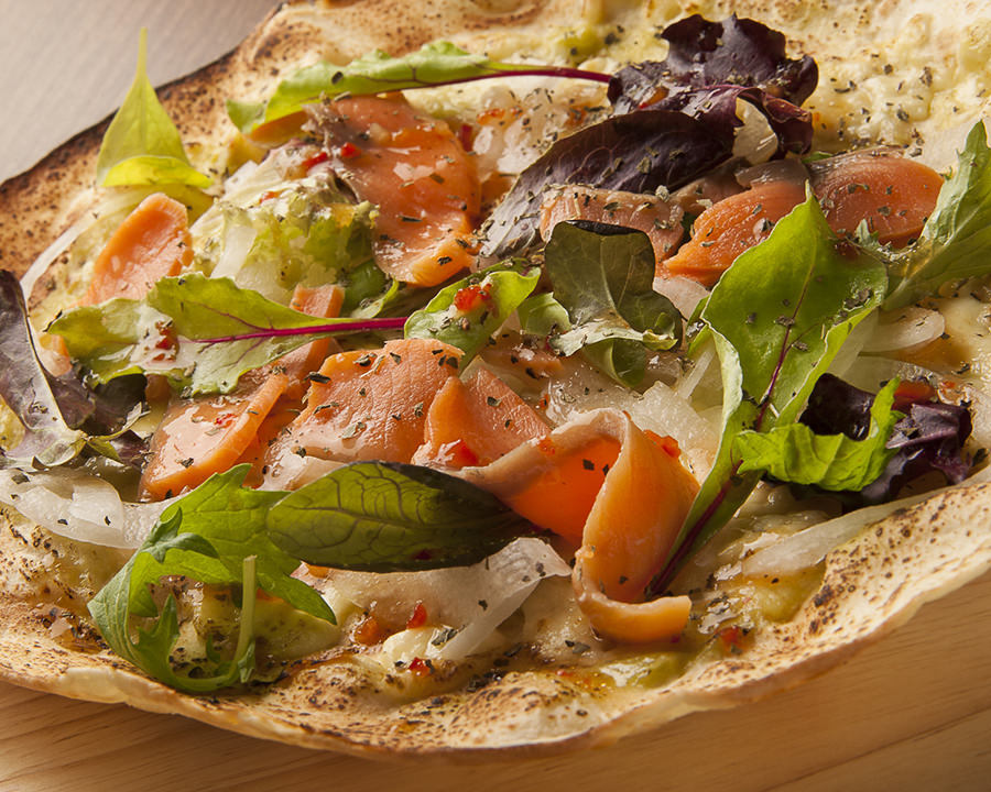 Smoked salmon pizza
