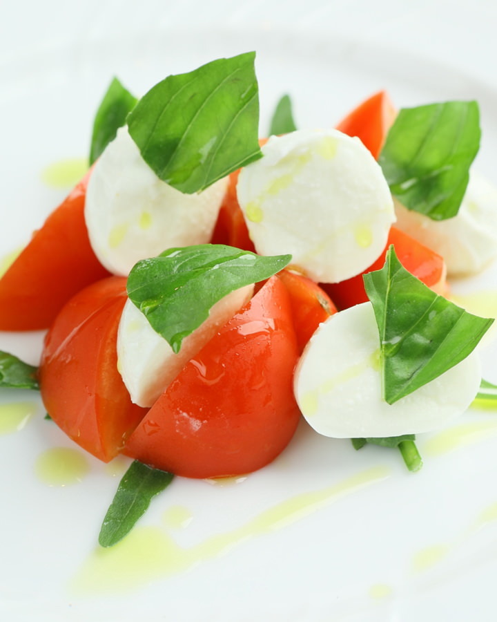 Thinly-sliced fish seasoned with olive oil, salt and pepper.