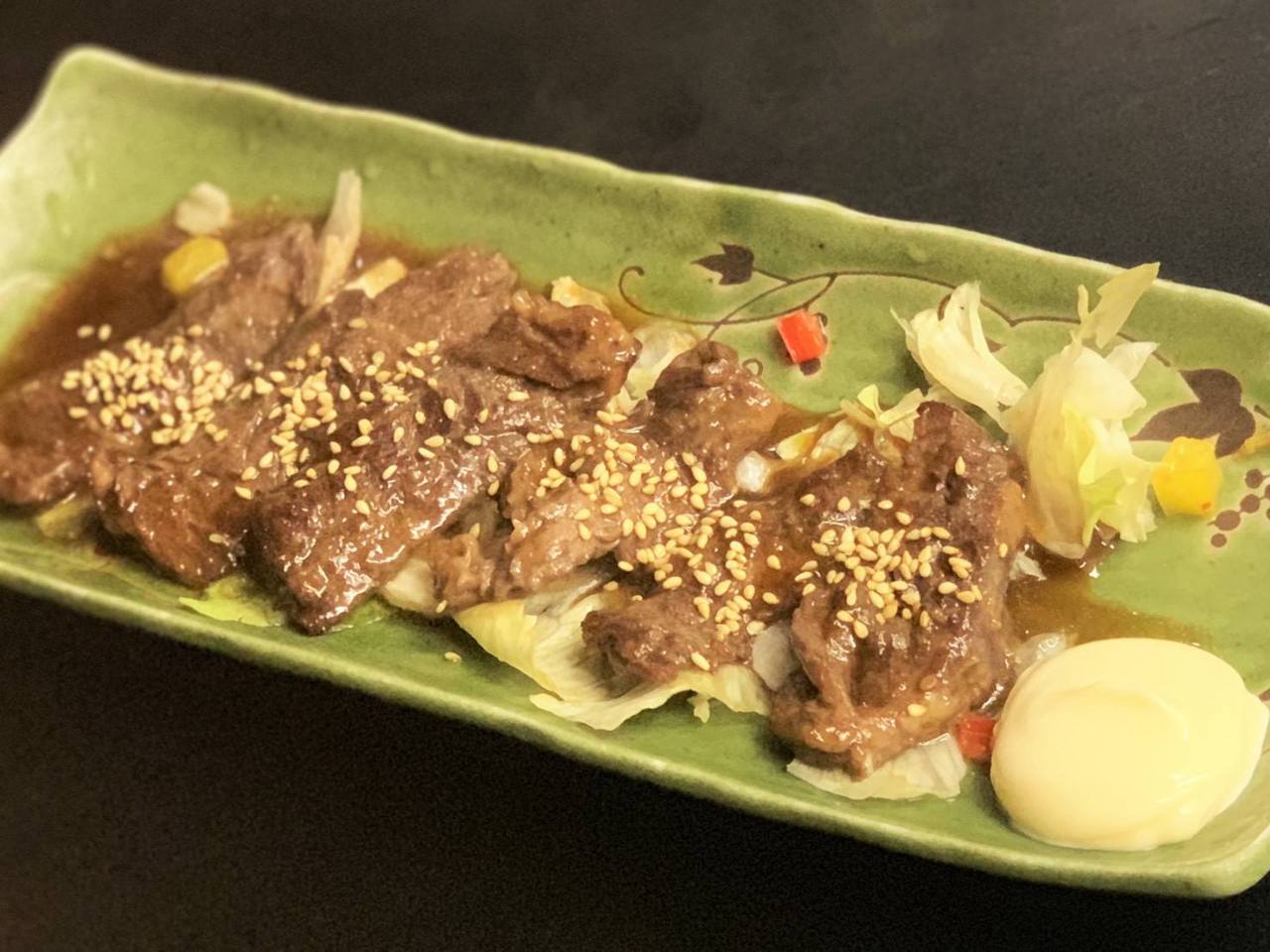 Tonpei-yaki (stir-fried cabbage and meat topped with egg)