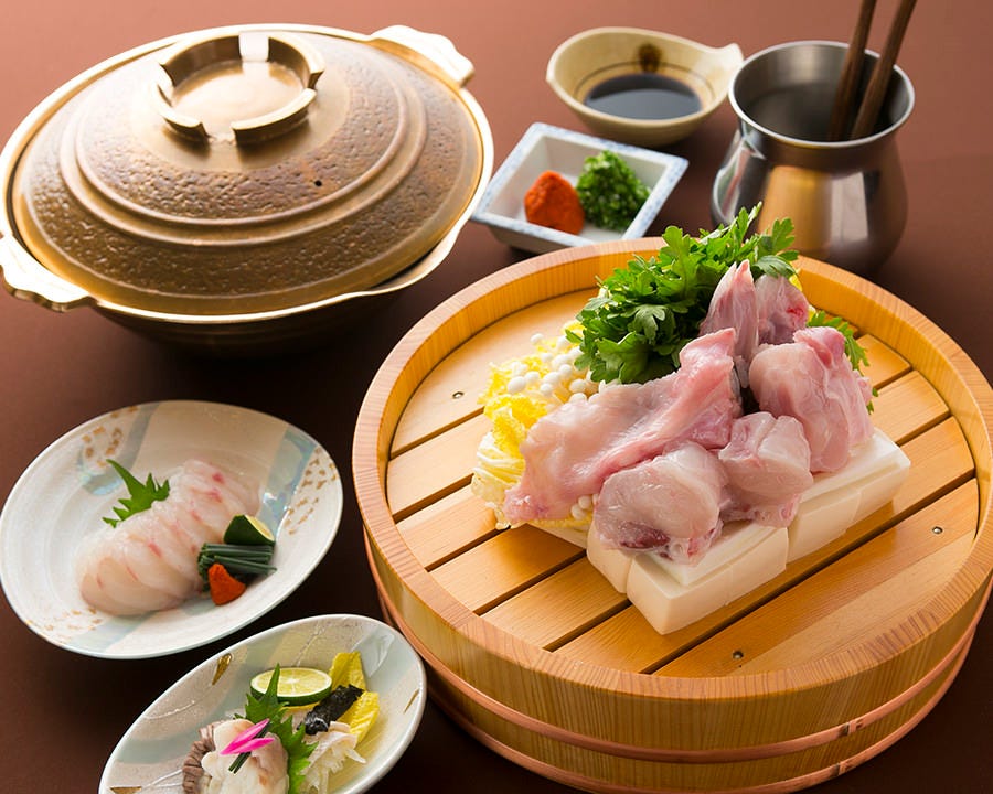 A restaurant specialized in wild Japanese pufferfish and pike conger dishes